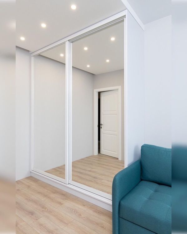Белый двухдверный шкаф-купе с зеркальными фасадами – стиль, удобство и максимум пространства.