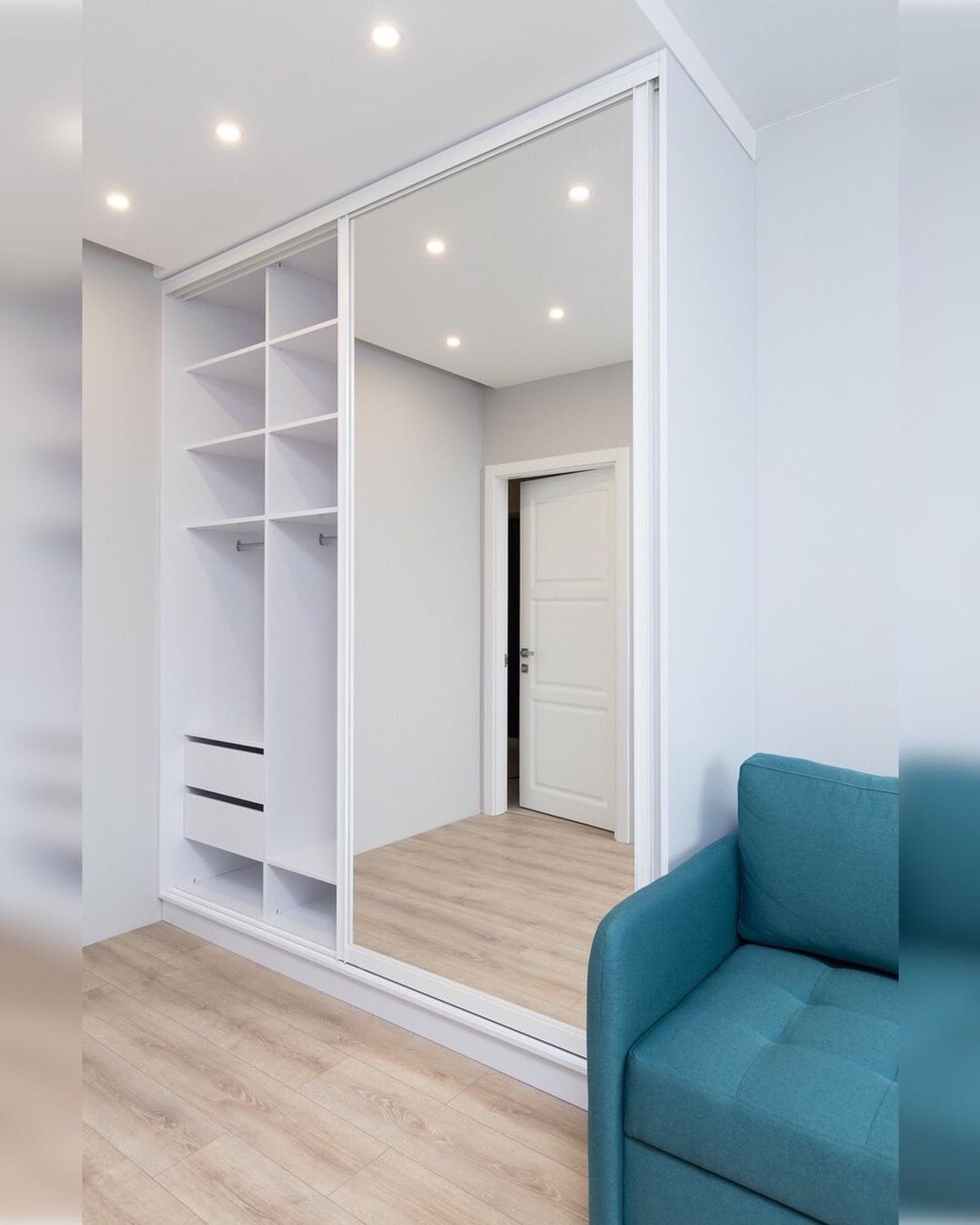 Встраиваемый шкаф-купе с ассиметричным зеркалом