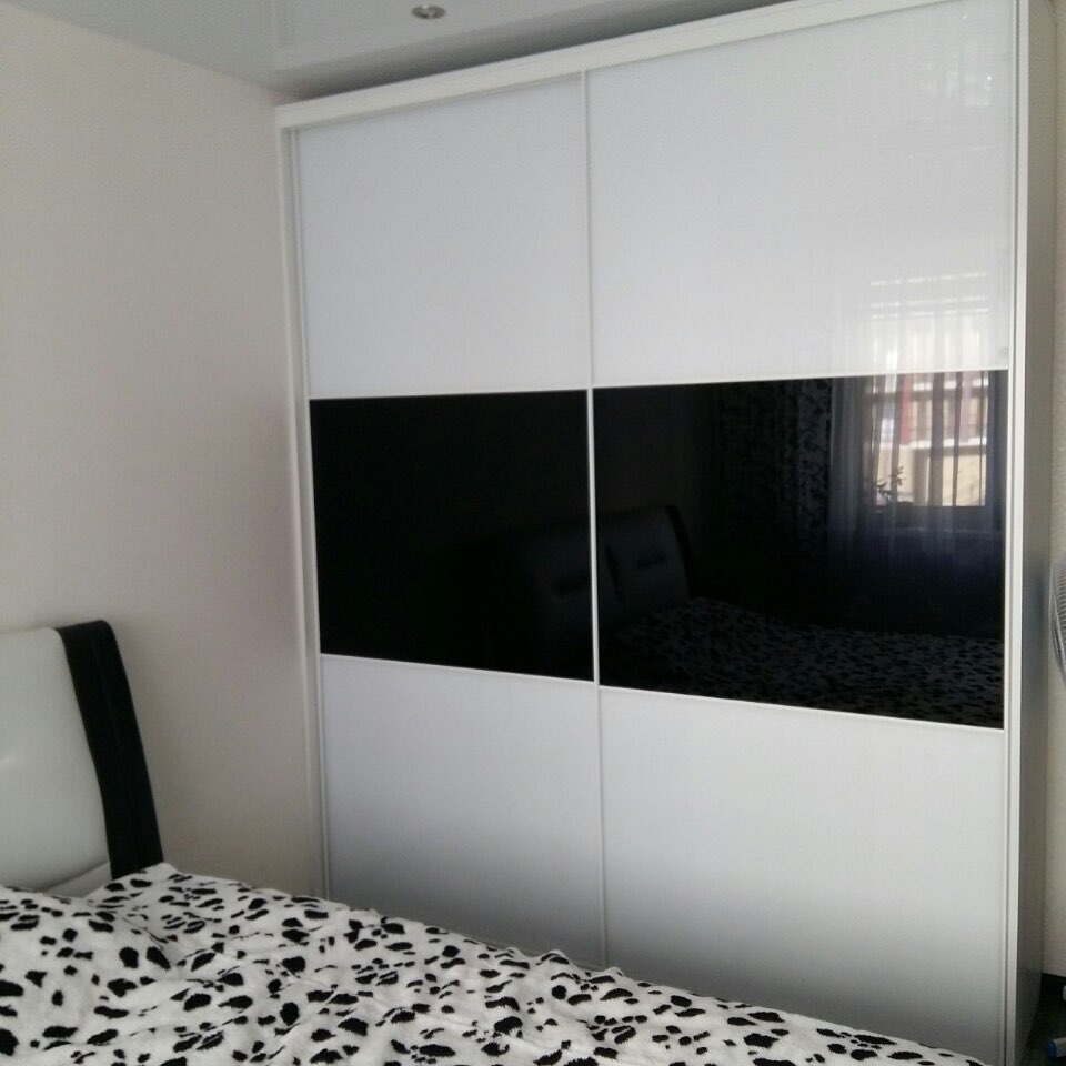 Прямой шкаф-купе для спальни или прихожей. Глянцевая поверхность.