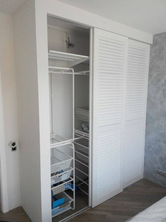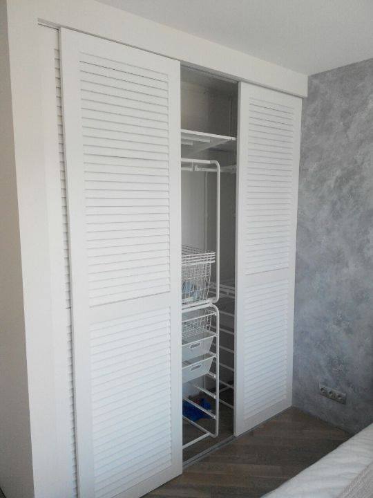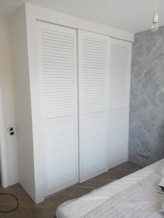 Белый шкаф-купе с фасадом жалюзи