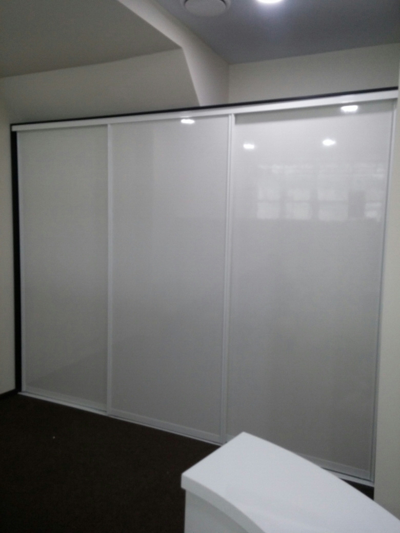 Двери в алюминиевом профиле. Ширина шкафа 152 см.