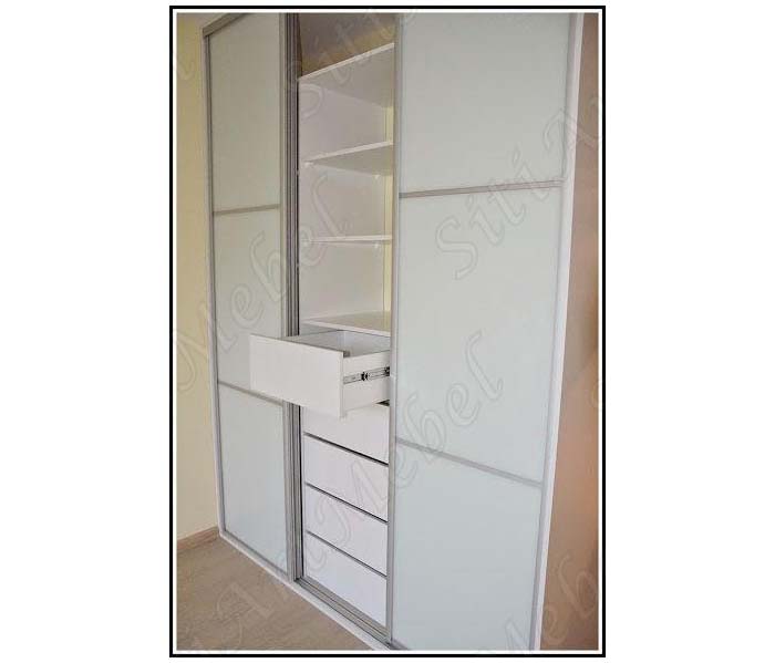 Белый шкаф-купе в серебристом профиле