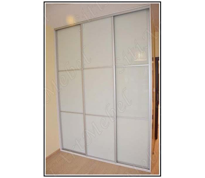 Встроенный трехдверный шкаф-купе со вставками лакобель