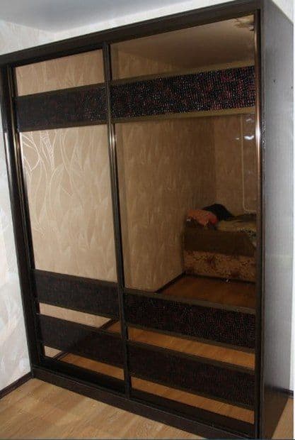 Линейный шкаф-купе с декоративным зеркалом на фасаде