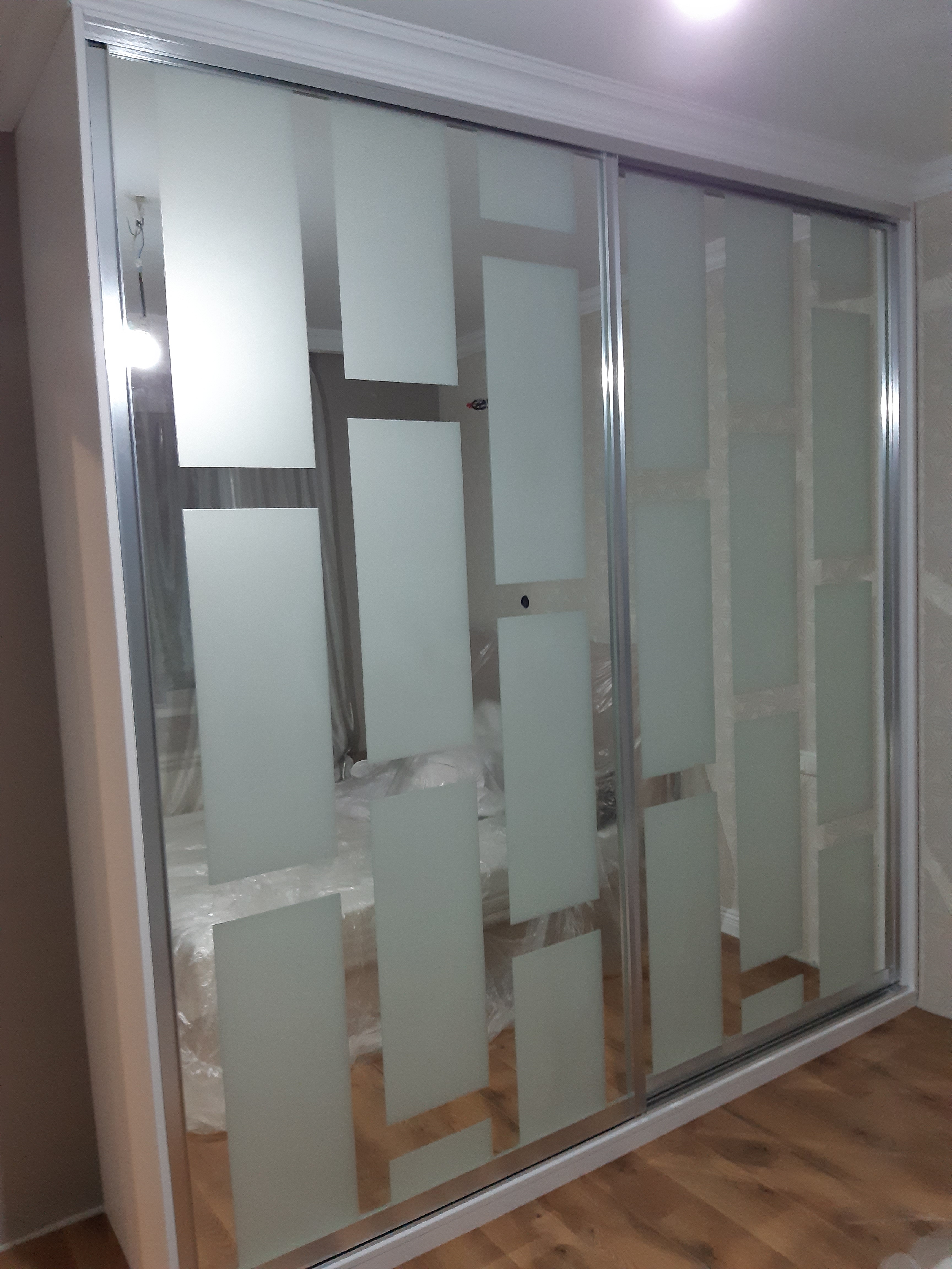 Двухдверный шкаф-купе с зеркалом и пескоструем