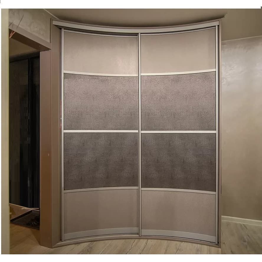 Максимально возможный выбор материалов. Шкафы-купе по технологи гнутых стекол. Зеркальные радиусные шкафы. 15 лет работы с радиусными шкафами.