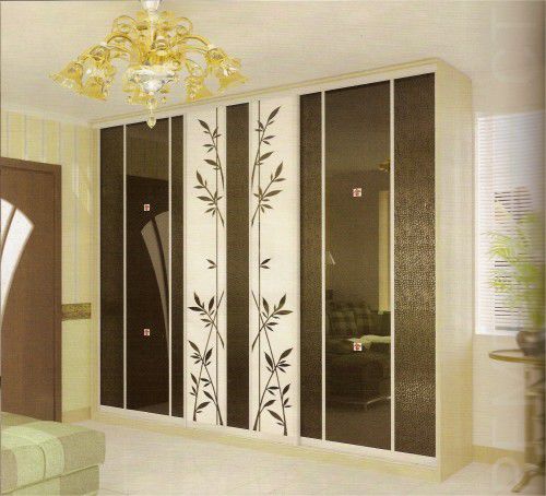 Смешение арабского и восточно-азиатского стилей в декоре. Бронзовые блики зеркал и чешуйчатая текстура стекла под марокканскую ковку сочетаются с бамбуковым рисунком на белых панелях фасада. Профиль окрашен в белый матовый цвет, каркас имеет песочную расцветку.