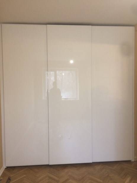 Глухие фасады с алюминиевым профилем. Ширина шкафа 152 см.