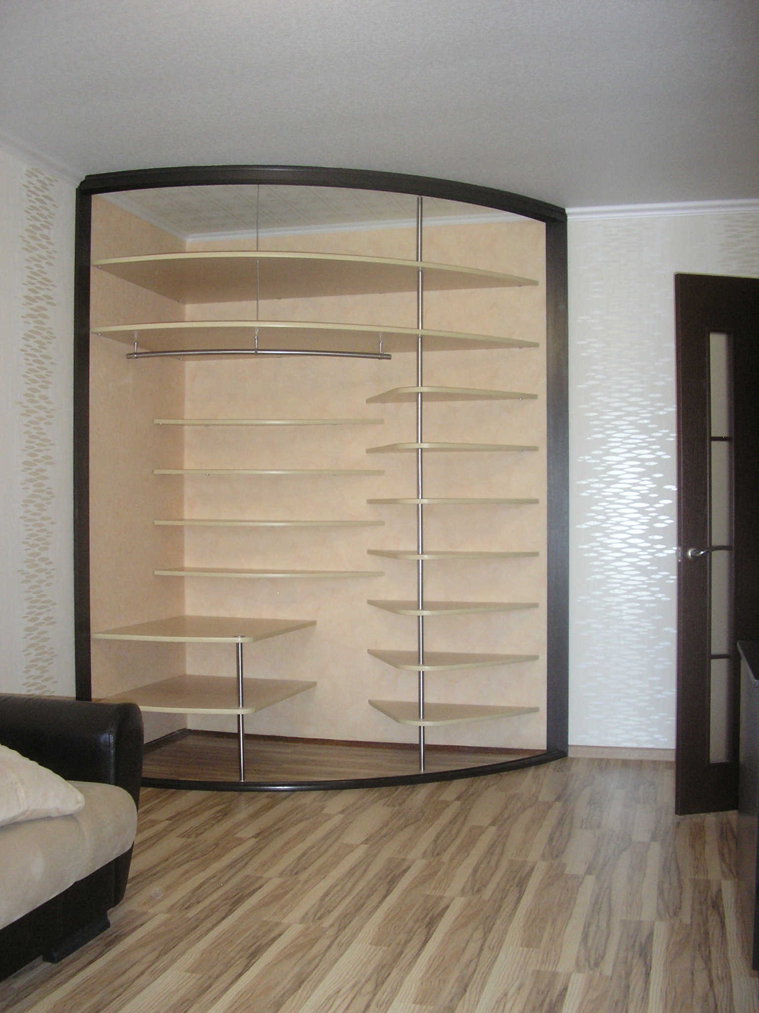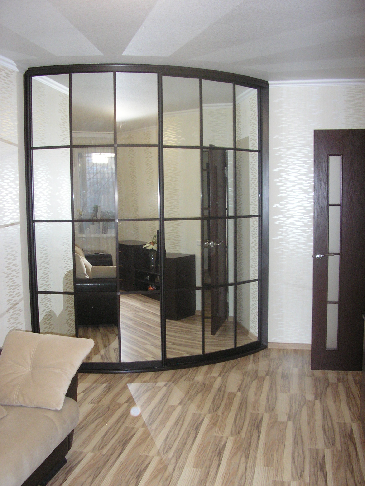 В изготовлении шкафа-купе использована технология гнутых стекол.