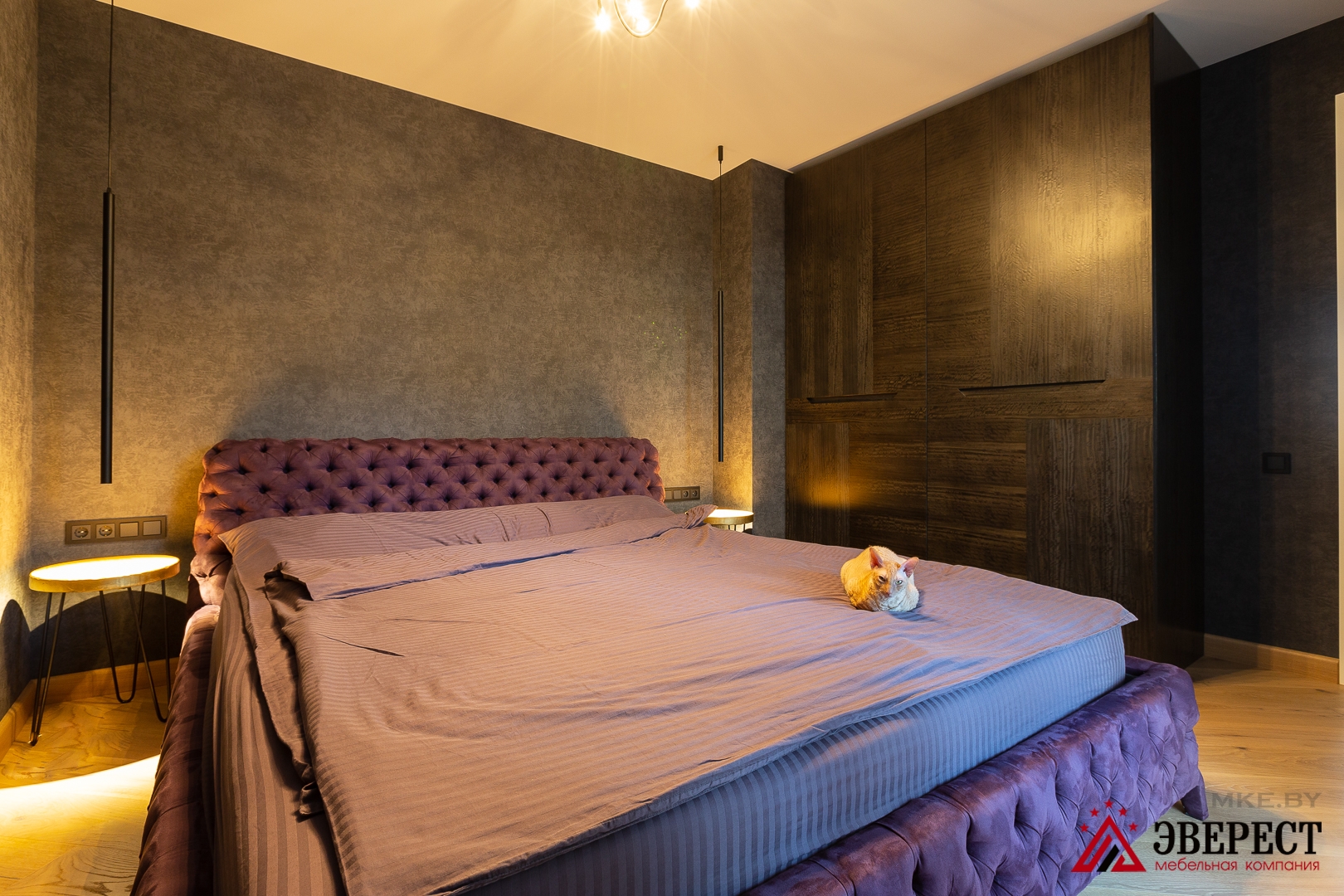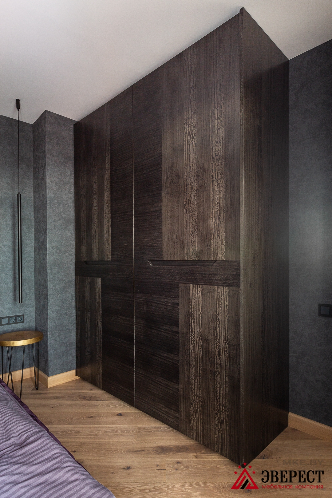 Двухдверный шкаф с интегрированными ручками. Фасады с текстурой дерева.