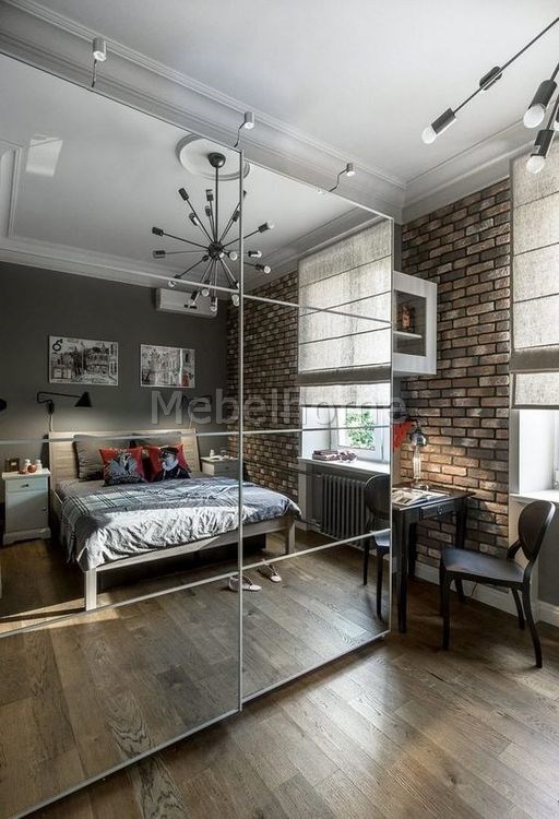 Встраиваемый шкаф-купе с ассиметричным зеркалом