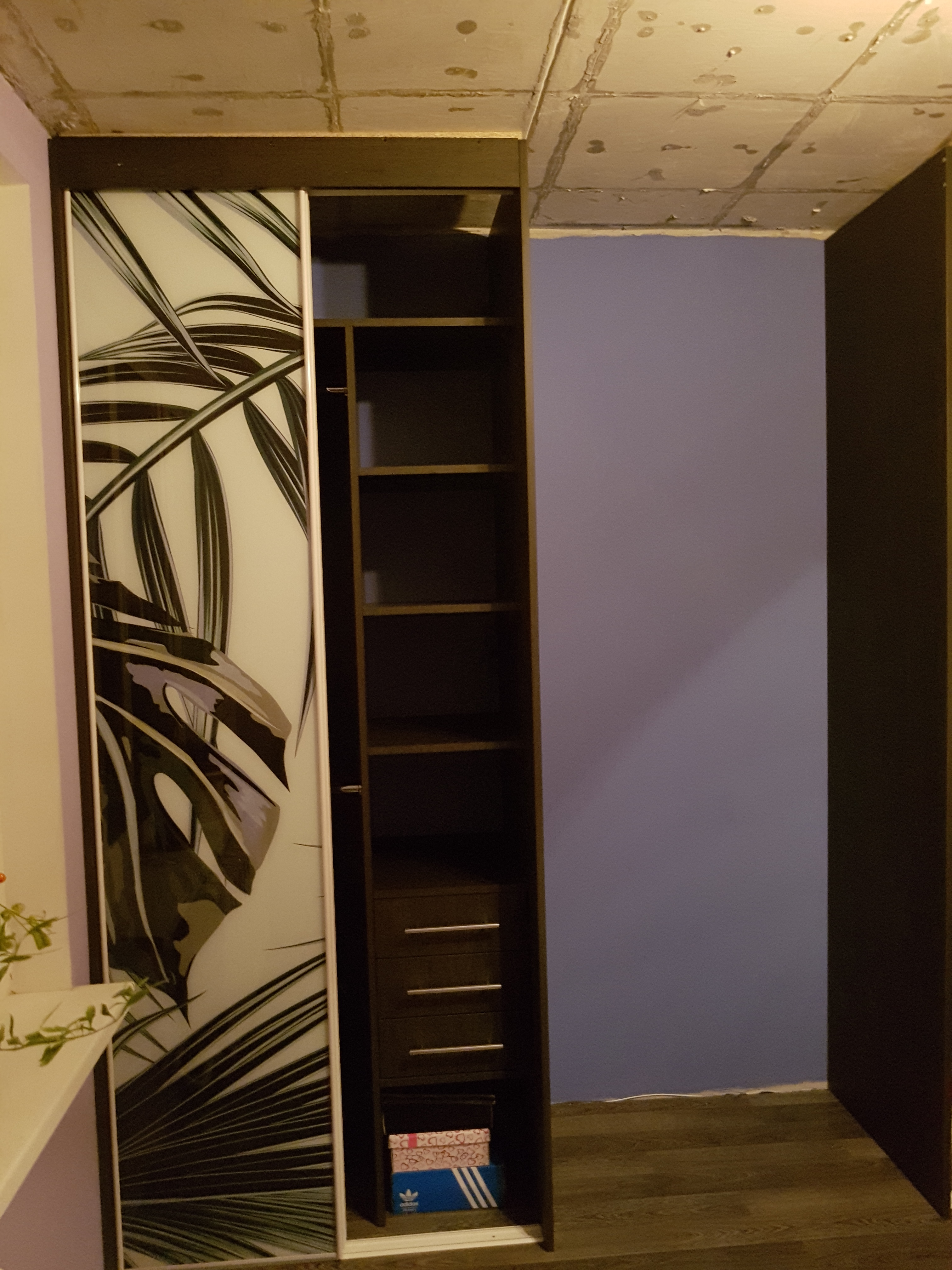 Шкаф-купе для маленькой спальни или узкой прихожей. Два отсека для одежды и белья.