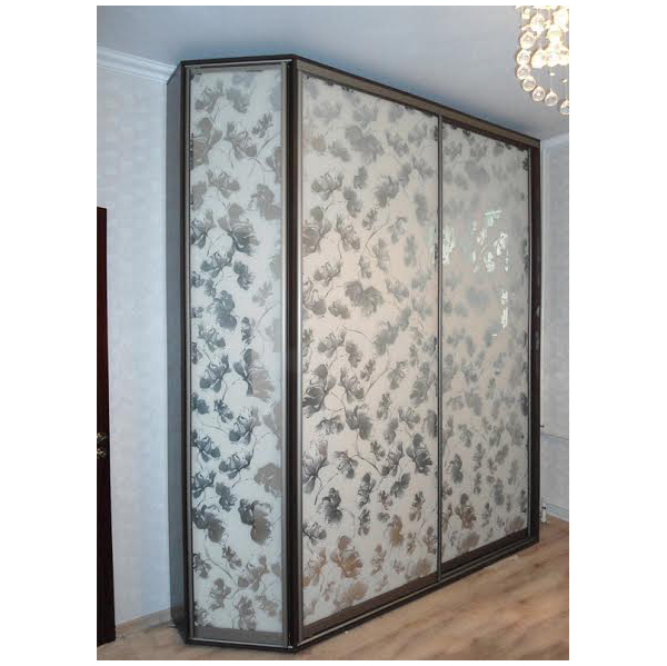 Корпусный шкаф-купе с комбинированными фасадами и застекленными полками.