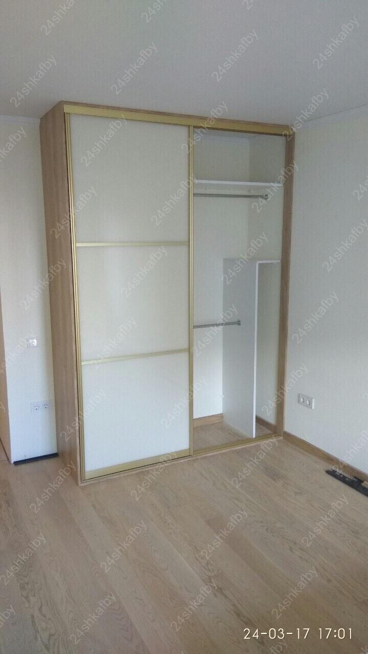 Шкаф-купе со светлым фасадом и темным корпусом. Зеркала с противоударной пленкой.