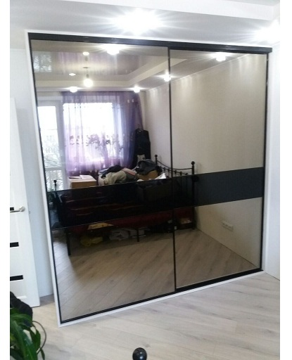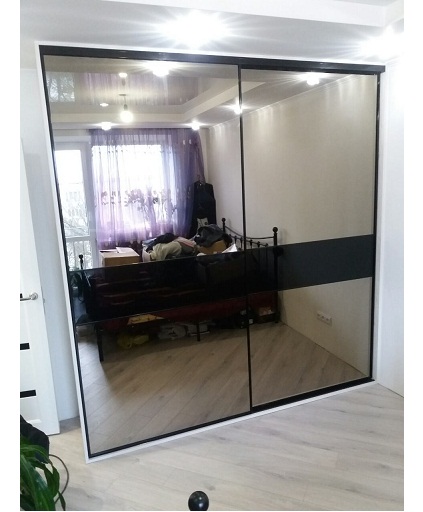 Линейный шкаф-купе с широкийм зеркалом и темной вставкой