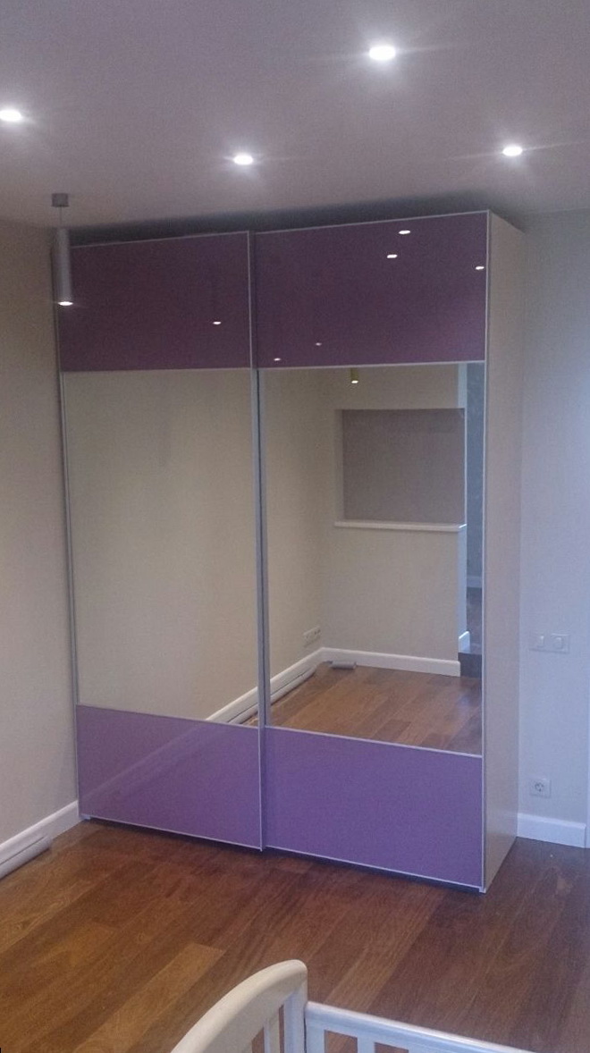 Линейный шкаф-купе с зеркалом и глянцевыми переливами на фасадах