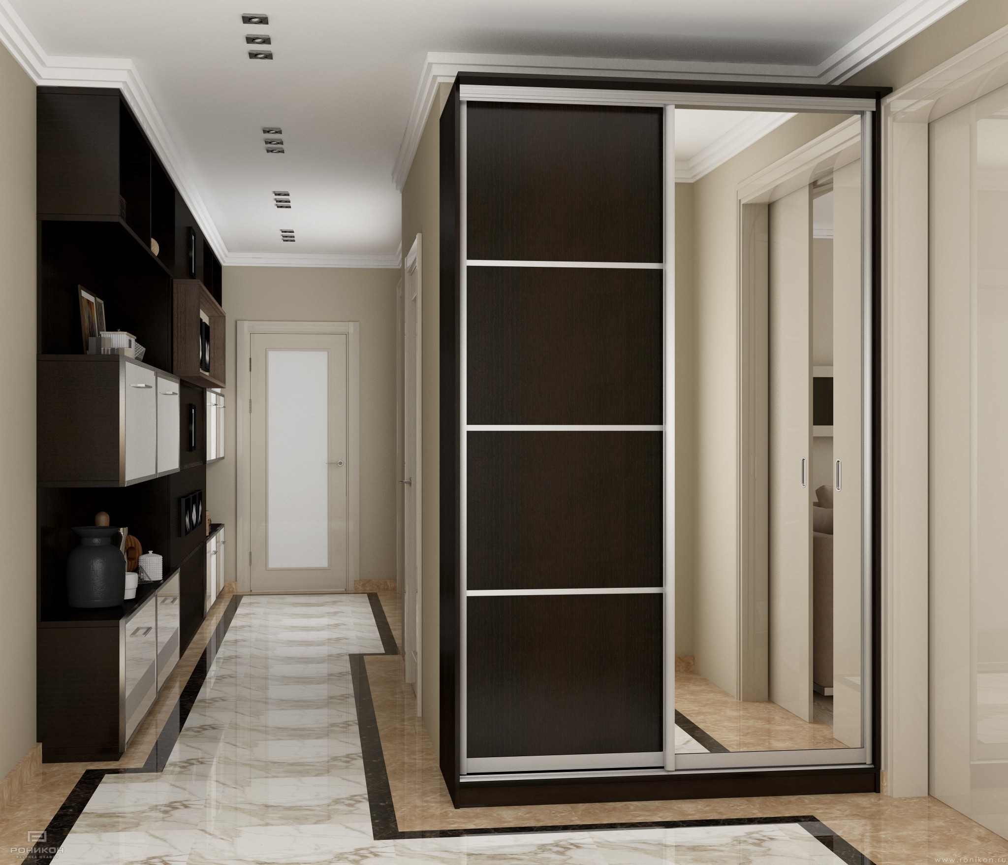 Шкаф-купе угловой с торцевыми полками