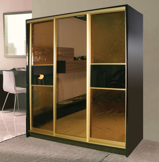 Встроенный трехдверный шкаф-купе со вставками лакобель