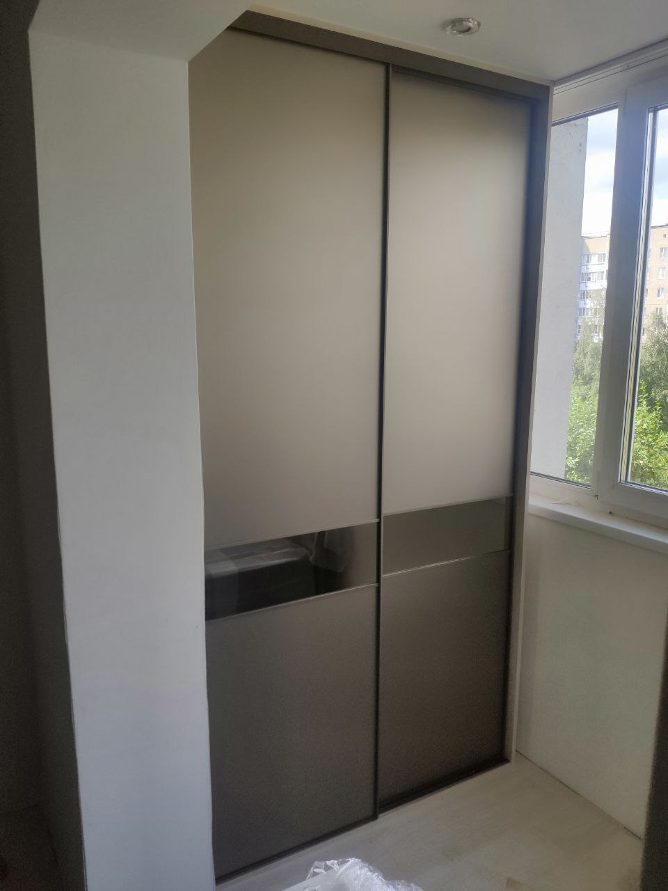 Двухдверный шкаф с раздвижными дверями «купе» на алюминиевом профиле.