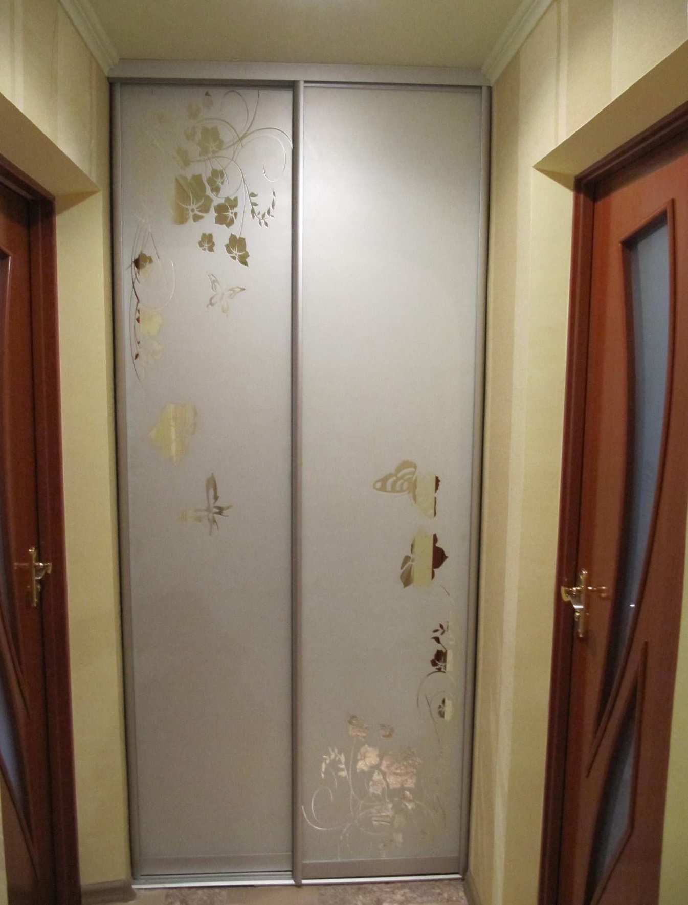 Компактный шкаф-купе удачно дополнит интерьер помещения. Шкаф отличается креативным дизайном створок, которые выполнены в пескоструе с оригинальными рисунками. Модель шкафа очень компактная, поэтому она не будет занимать много пространства в помещении. Две створки оснащены современным механизмом бесшумного раздвижения.