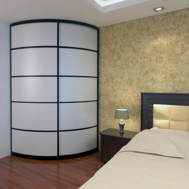 Шкаф с матовым остеклением. Боковая ниша с глубокими открытыми полками.