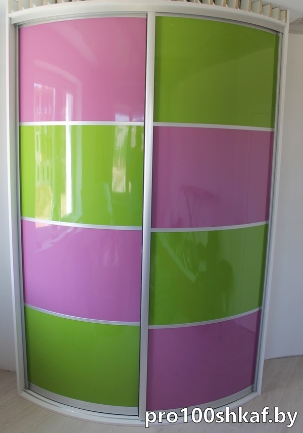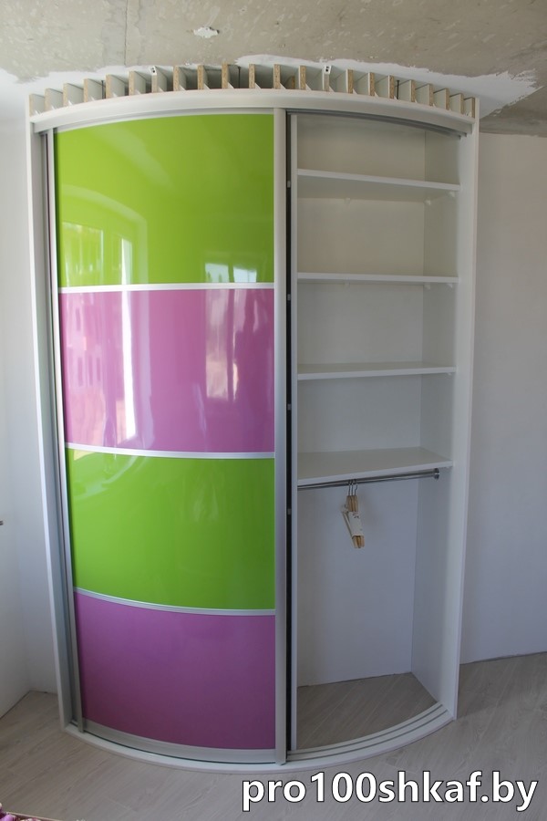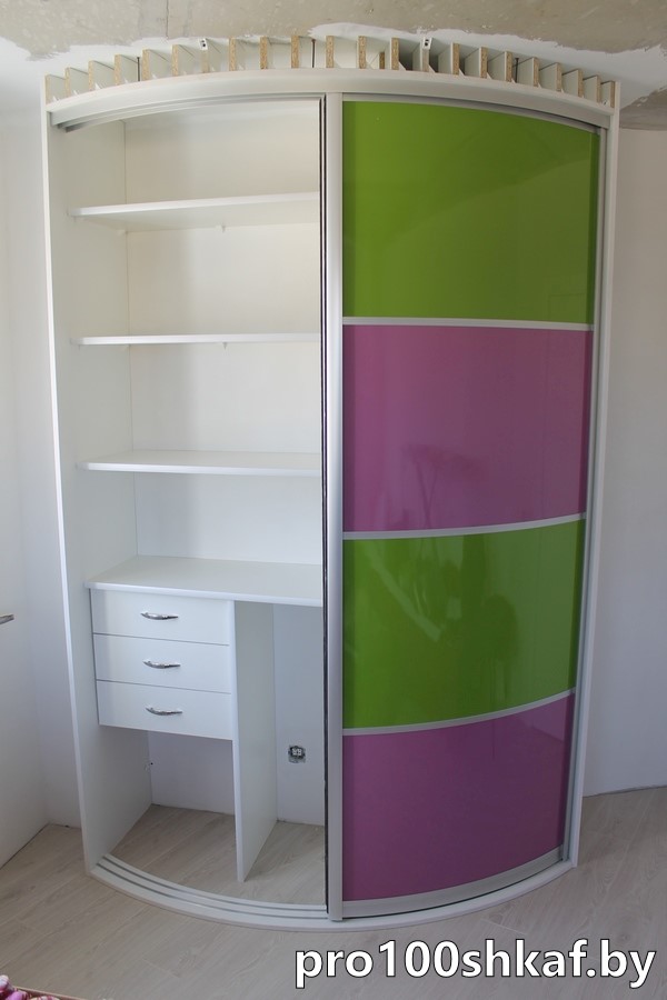 Шкаф-купе с боковыми стеклянными полками и подсветкой
