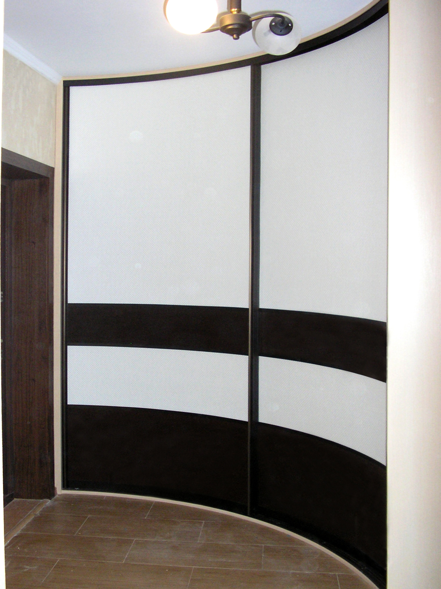 Максимально возможный выбор материалов. Шкафы-купе по технологи гнутых стекол. Зеркальные радиусные шкафы. 15 лет работы с радиусными шкафами.