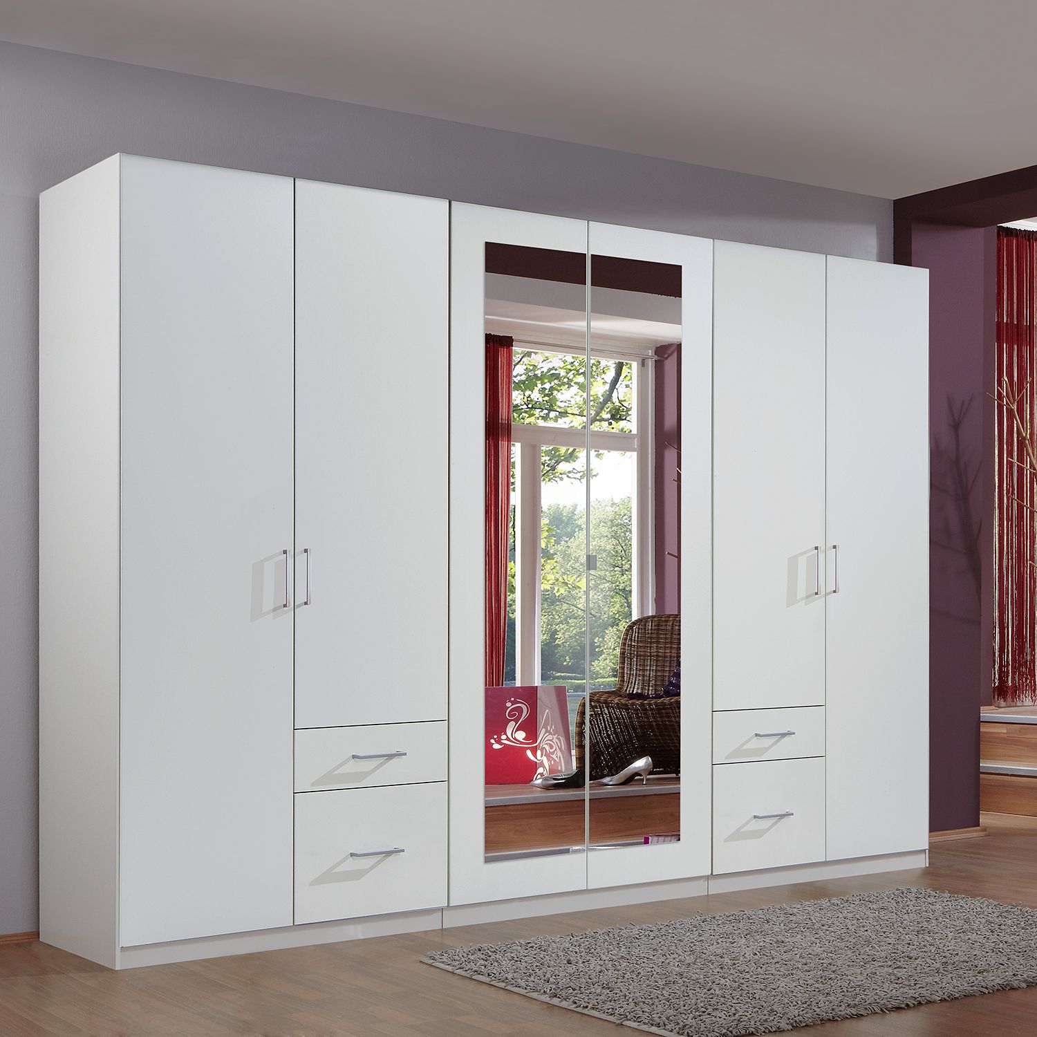 Универсальный платяной шкаф-купе среднего размера дополнен тремя фасадными зеркалами.