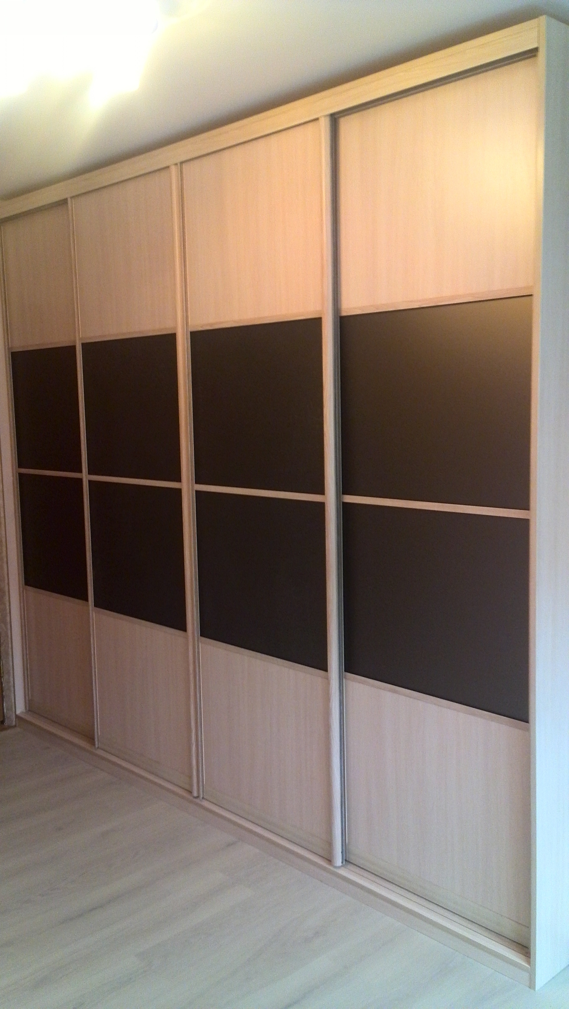 код 89227Фасад под светлое дерево с горизонтальной полосой матовых вставок кофейного цвета.