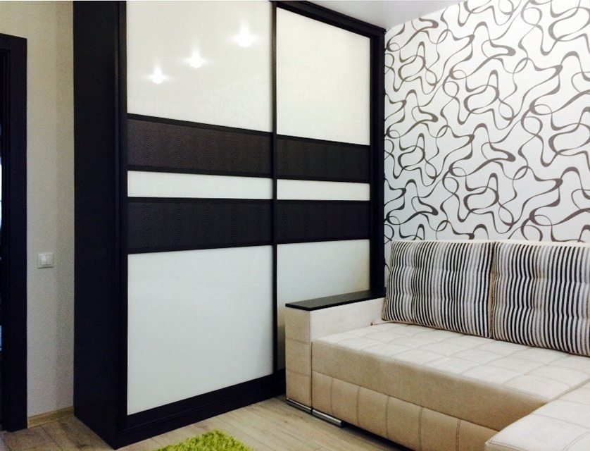 Шкаф-купе малого размера с фасадным зеркалом, покрытым противоударной пленкой.