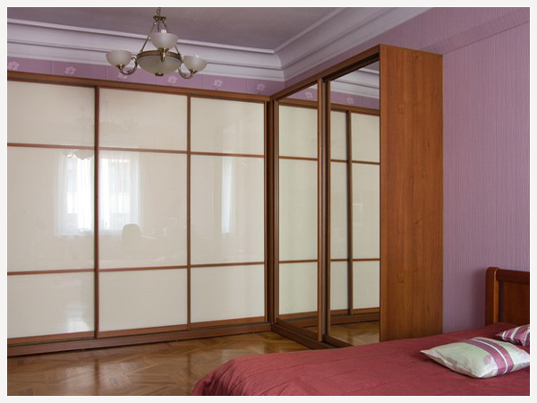 Широкий угловой шкаф-купе Кремовый глянец - Зеркало