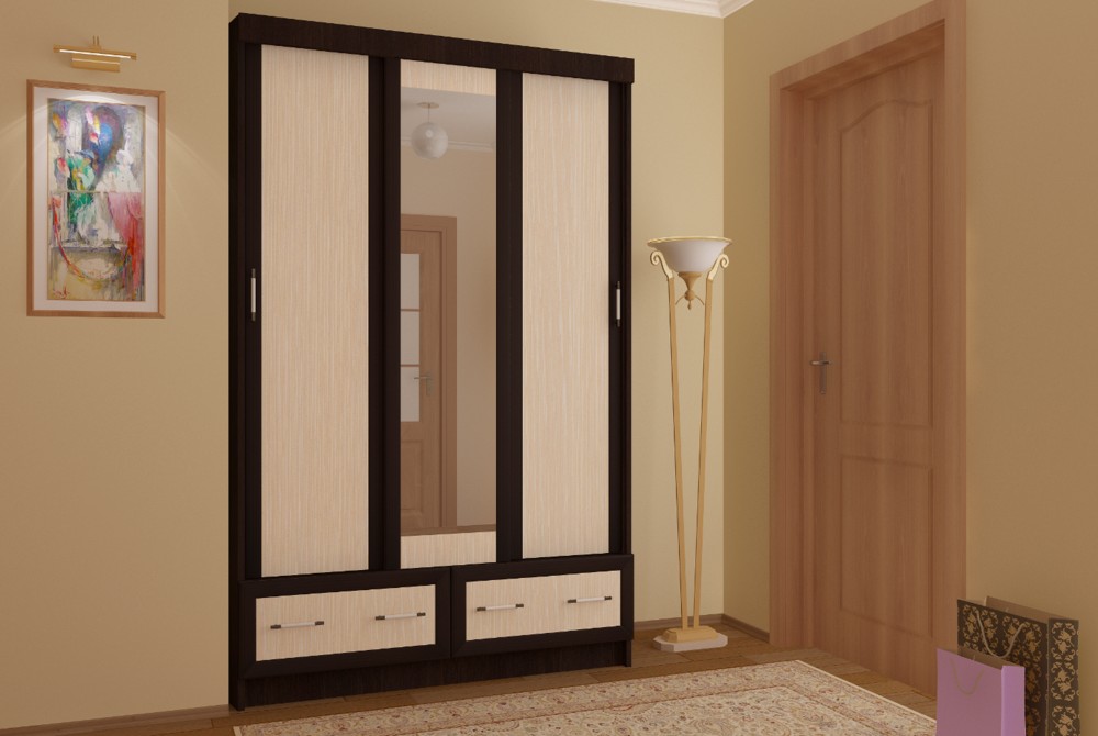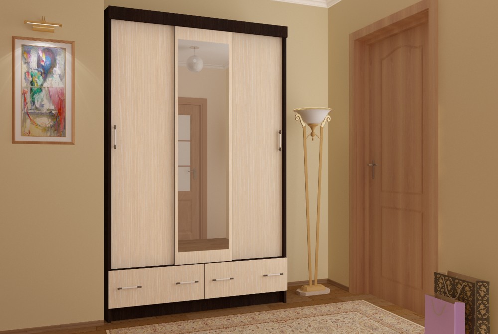 код 90150Материал: ЛДСП (раскладка МДФ). Центральная створка оснащена зеркалом.