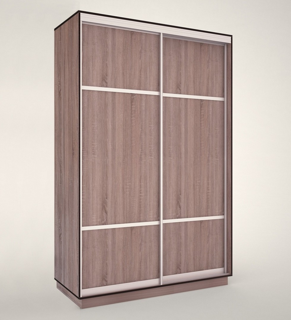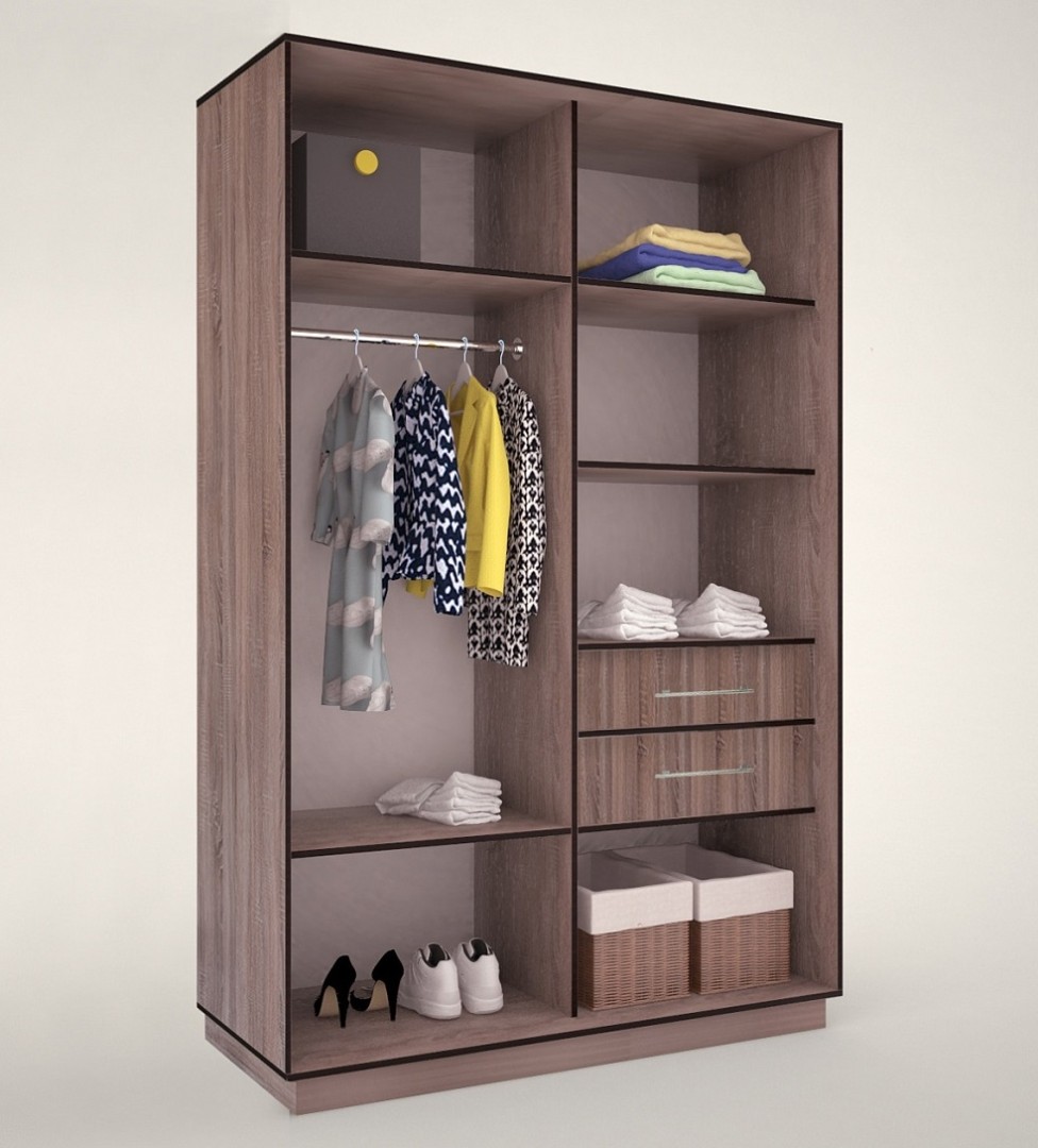 Малогабаритный двухстворчатый шкаф-купе цвета “дуб трюфель” – крайне удобная модель шкафа для маленькой квартиры. Внутри шкафа расположены полки, шуфляды и штанга для вешалок. Благодаря смешанной системе хранения в шкафу можно поместить одежду, коробки, обувь, зонты, корзины для белья и многое другое.