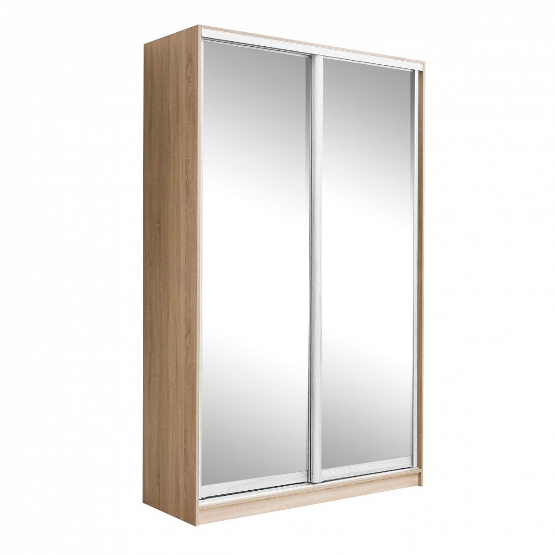 Шкаф-купе для светлой спальни в современном или скандинавском стиле. Две раздвижные двери изготовлены из ЛДСП в оттенке бежевого дуба сономы с серым подтоном. Ширина шкафа 138 см и стандартная глубина в 60 см позволяет размещать конструкцию даже в самых узких помещениях. Внутри шкафа находятся две секции шириной 72 см и 61 см.