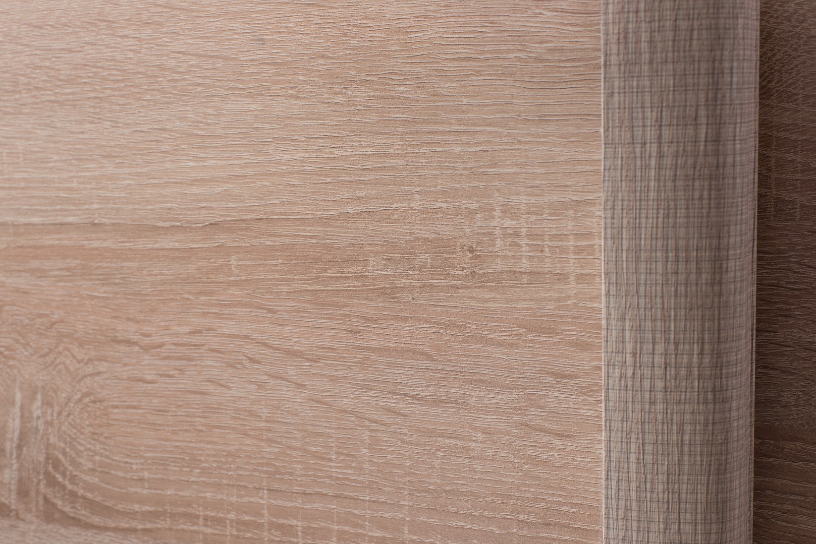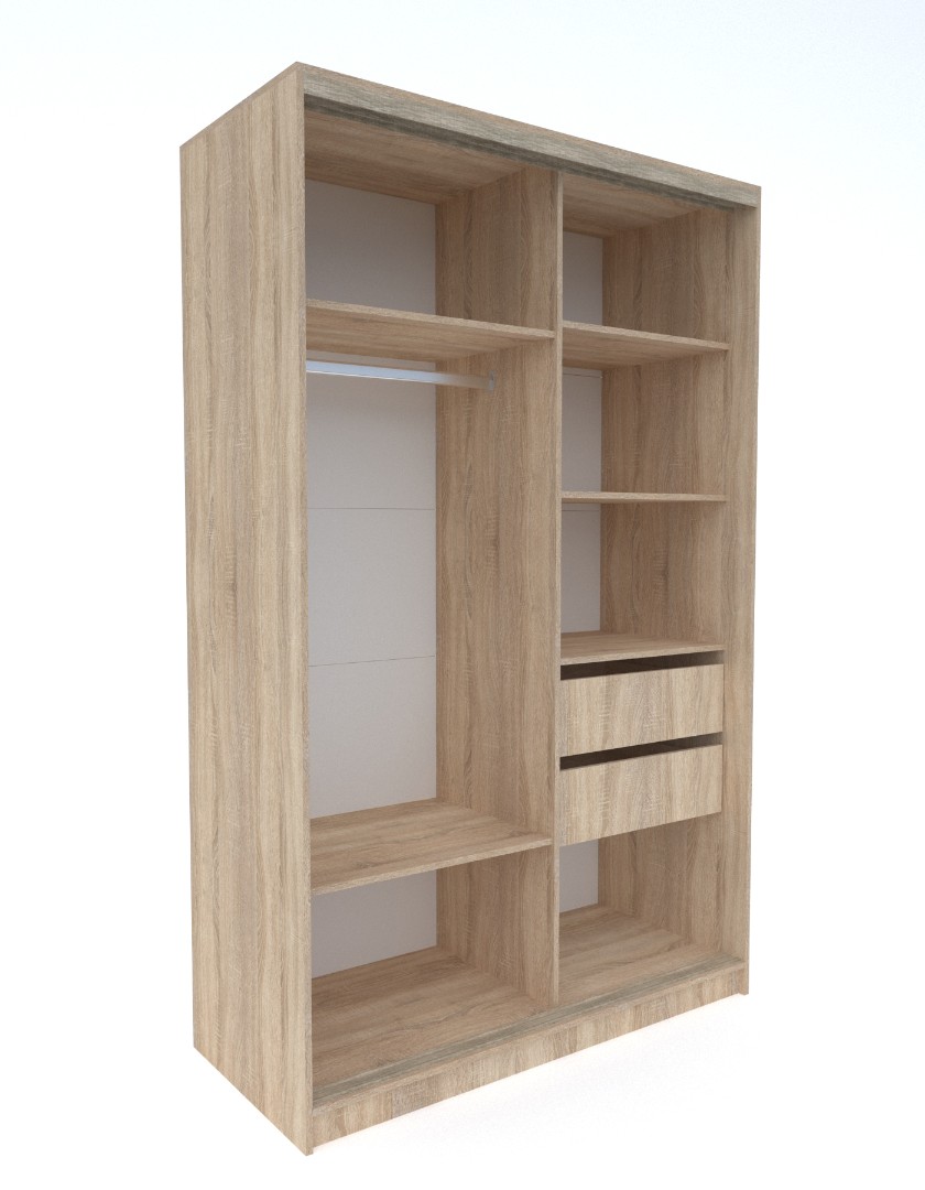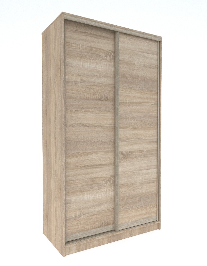 Шкаф-купе светлый в оттенке “дуб сонома” имеет ярко выраженную структуру дерева на фасадах и корпусе. Шкаф изготавливается из ЛДСП с максимально низким уровнем формальдегида в составе (класс эмиссии Е05). Для раздвижных дверей используется алюминиевый каркас и качественная фурнитура. Ширина 138 см позволяет вписать шкаф в малогабаритную спальню, комнату или прихожую.