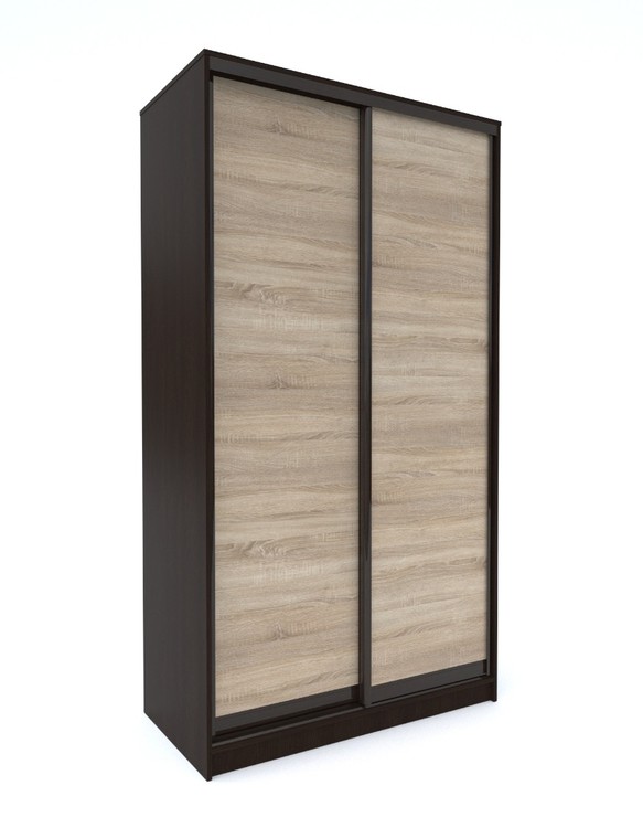 Корпусный двухцветный шкаф-купе без зеркал. Одно отделение внутри. Ширина 112 см.