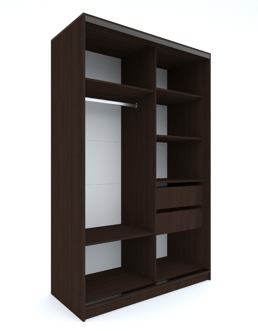 код 122568Шкаф-купе шириной 138 см содержит штангу, полки и ящики.
