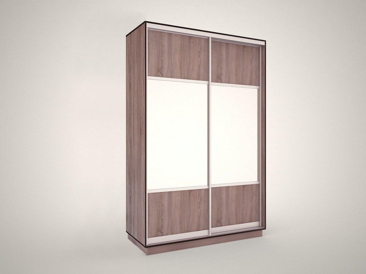 Шкаф-купе «ШК 1400 Комби-2» (шимо светлый) профиль алюминий