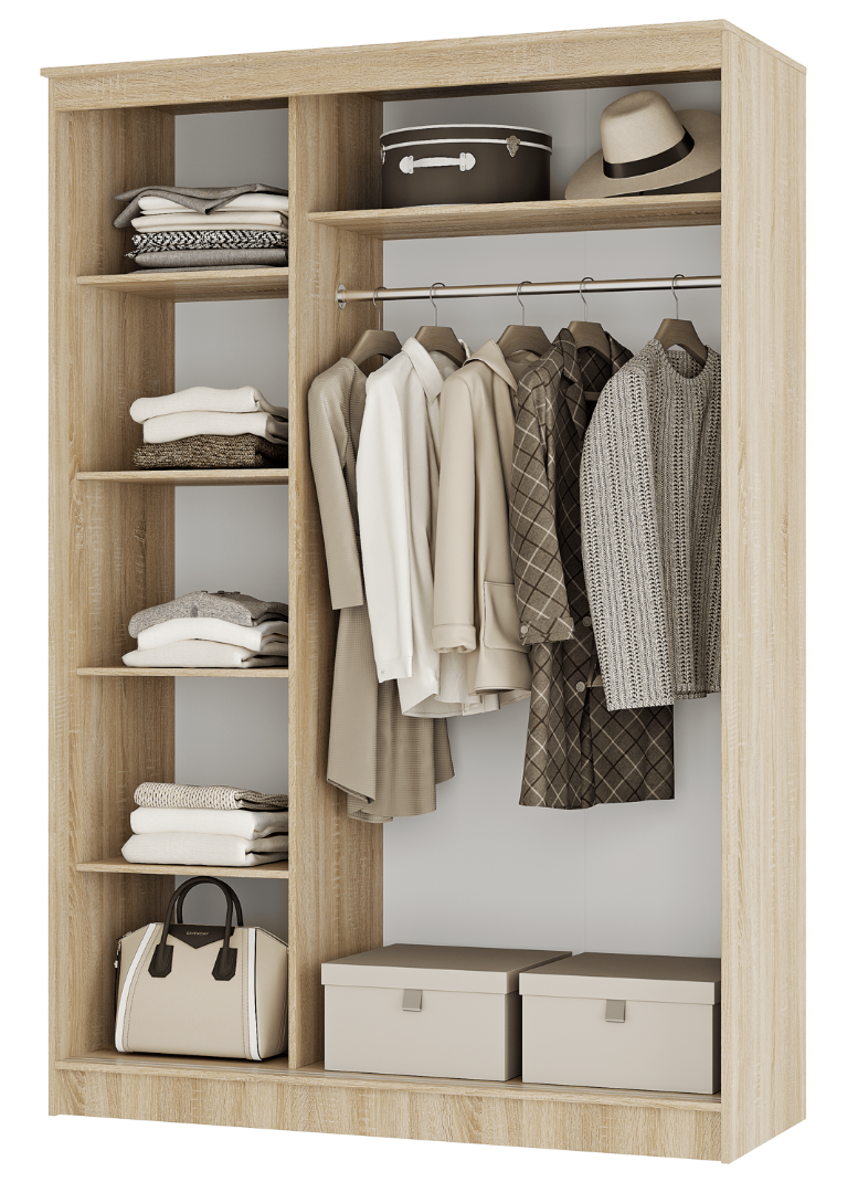- Благодаря трём створкам обеспечивает удобный доступ к вещам.