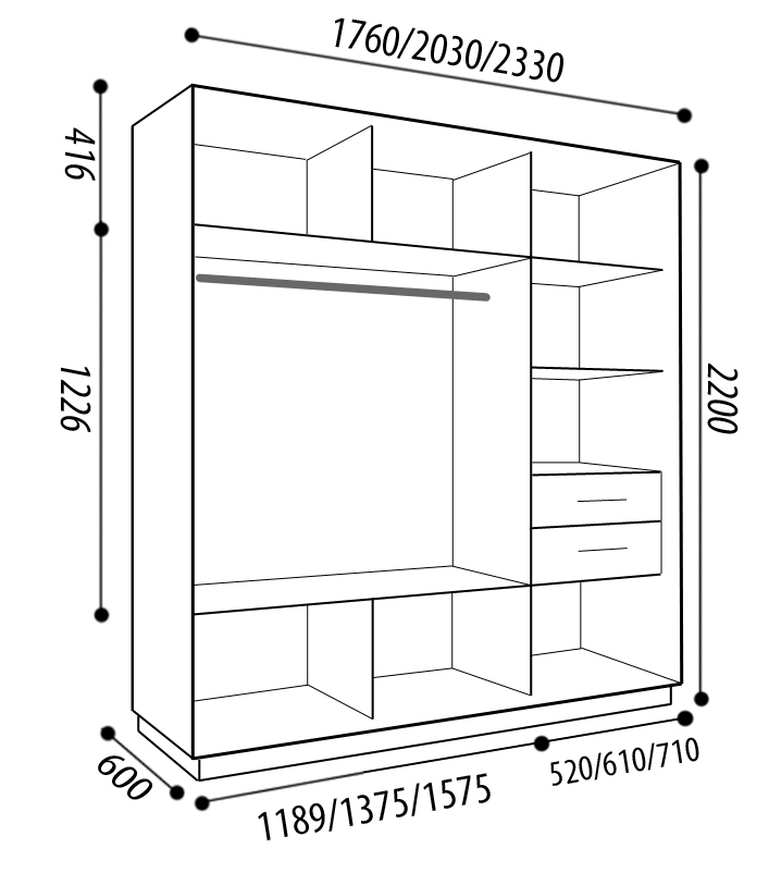 Размер (ДхШхВ): 2200x600x2400 мм. Материал: ЛДСП.