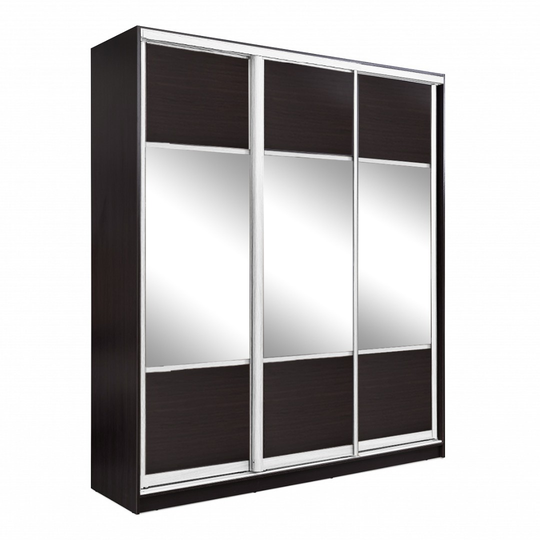 код 119538Габариты шкафа: 1760x2200x600 мм. Матовые фасады в цвете венге, зеркало на каждой створке.