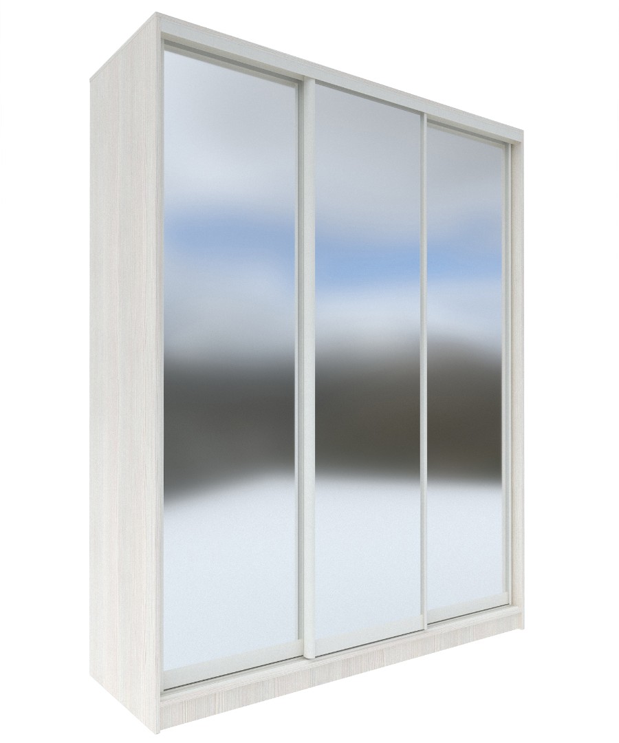 Шкаф-купе «ШК 2100» три зеркала (дуб молочный) профиль шампань
