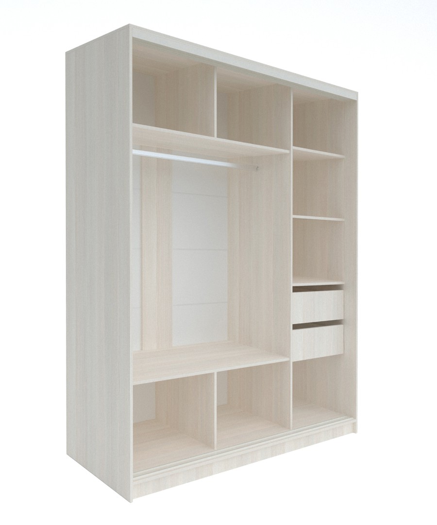 Фабричный шкаф-купе без зеркал с полками слева. Ширина 152 см.