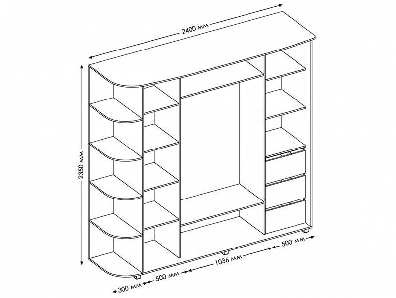 Размер: 2400x600x2300 мм. Материал: ЛДСП.