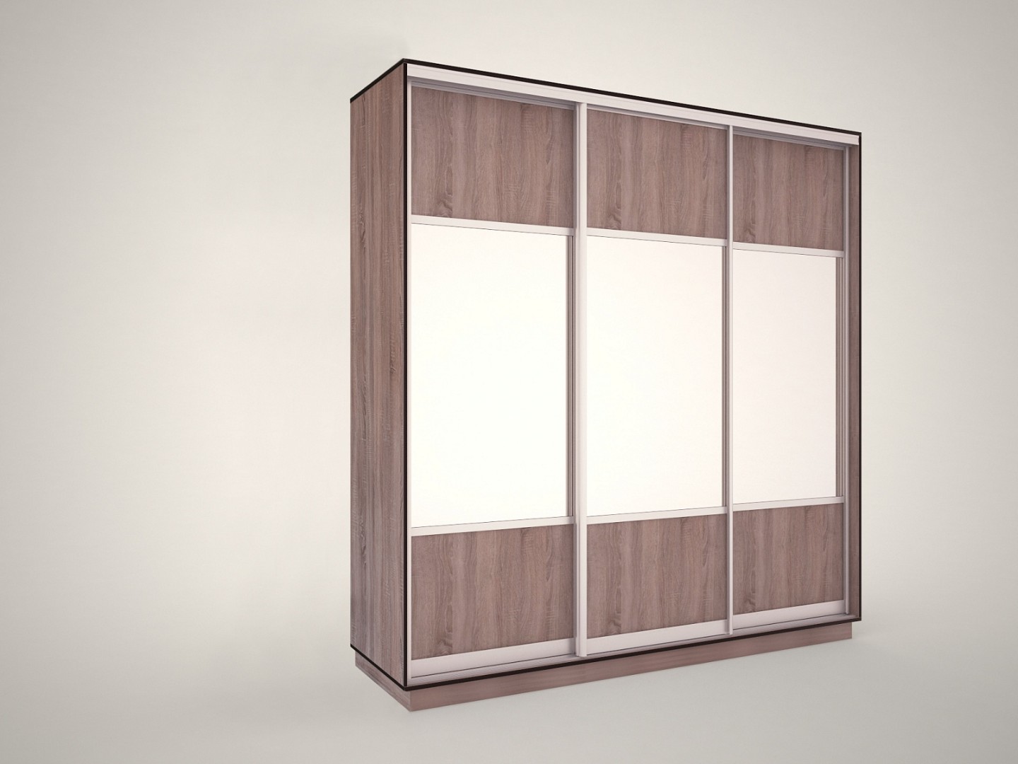 Шкаф-купе «ШК 2400» три зеркала (дуб молочный) профиль шампань