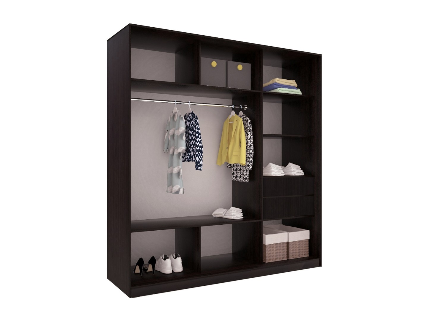 код 119523Большой шкаф-купе шириной 230 см с комплектом выдвижных ящиков внутри.