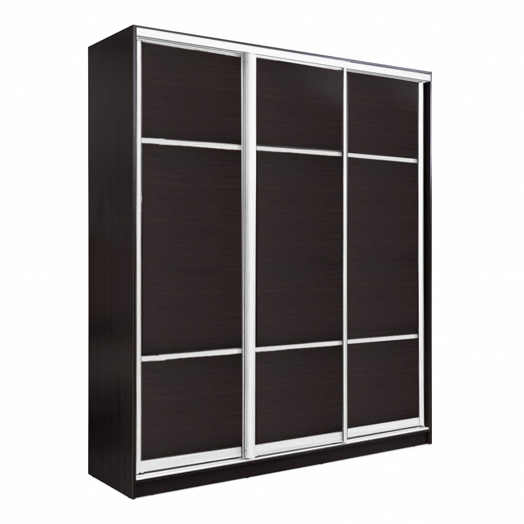 код 119525Темно-коричневый шкаф-купе с фактурой дуба венге. Три раздвижные створки на системе Сенатор.