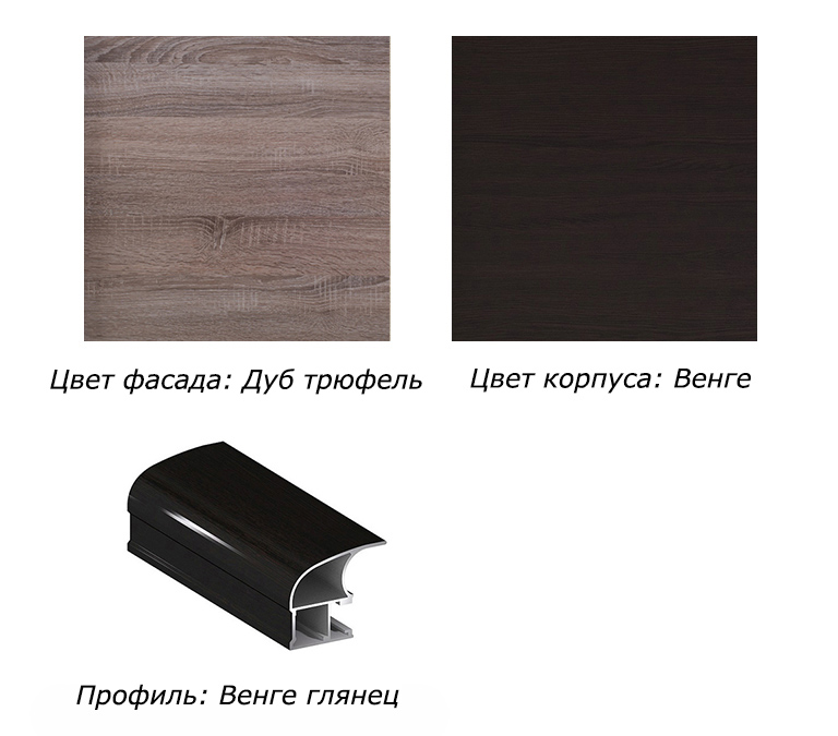 Цвет фасада – Дуб трюфель. Цвет профиля – Венге глянец (в тон корпуса).