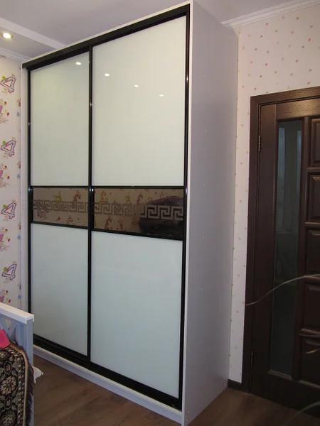 Светлая модель шкафа-купе для спальной комнаты или прихожей. Зеркальные створки.