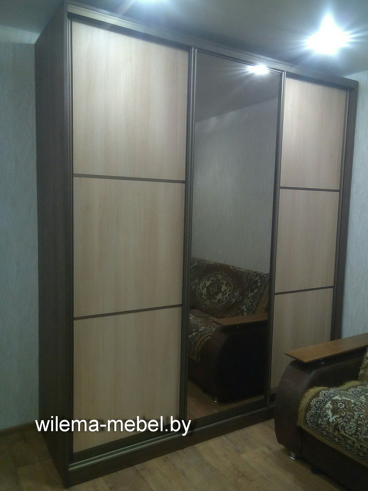 Шкаф-купе для жилой комнаты, прихожей или спальни. Зеркало с противоударной пленкой.